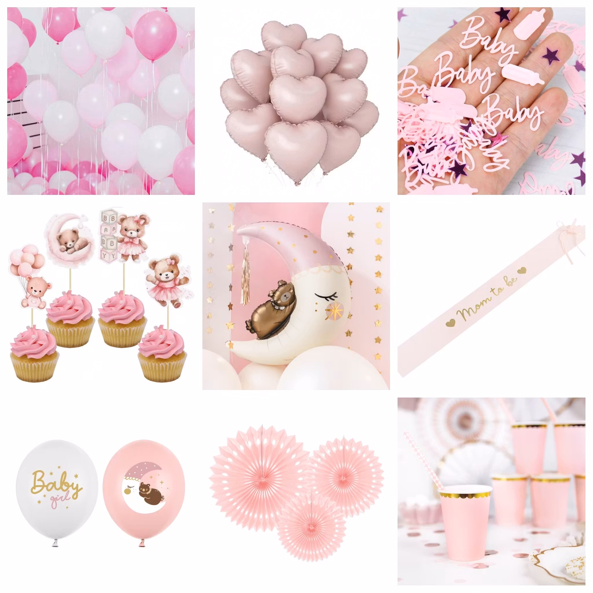 Fira den blivande mamman med ett komplett och drömmigt baby shower-kit i rosa toner. Ett färdigt kalaskit som gör det enkelt att skapa en varm, kärleksfull och stilfull fest med gulligt nalletema och mjuka pastellnyanser.