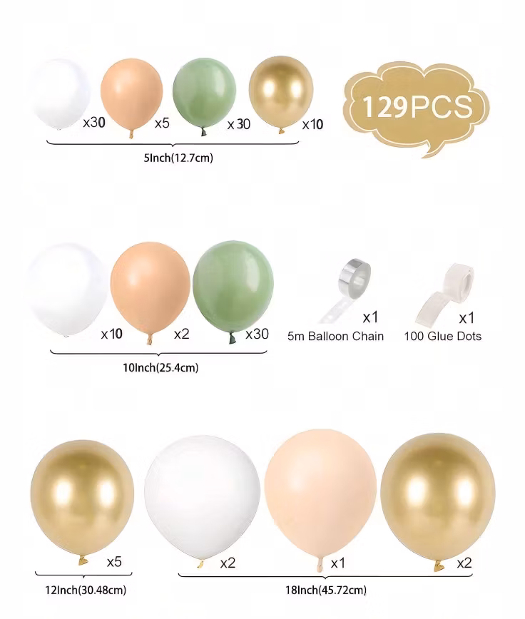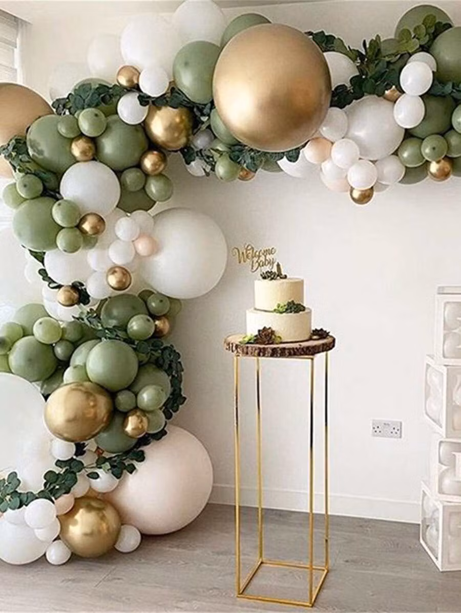 Vad är en fest utan en spektakulär ballongbåge? Låt oss presentera vår fantastiska Ballongbåge i Grön, Vit och Guld – den ultimata stämningshöjaren för varje tillställning! Här snackar vi inte bara om att imponera på gästerna, utan även på dig själv.