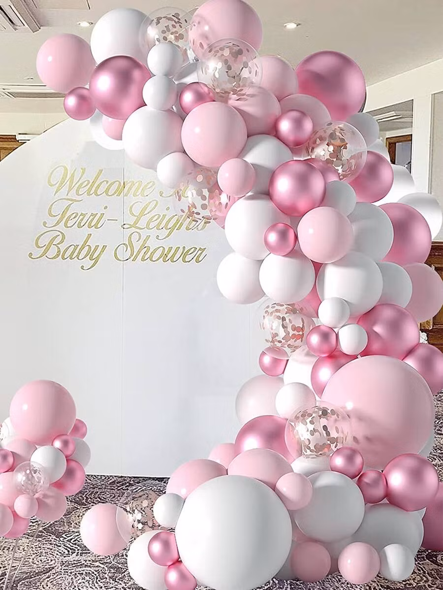 Låt din fest bli en verklig saga med vår rosa och vita ballongbåge! Gör det till en dag att minnas med denna underbara dekoration som kommer att lysa upp ditt firande. 🎉👑