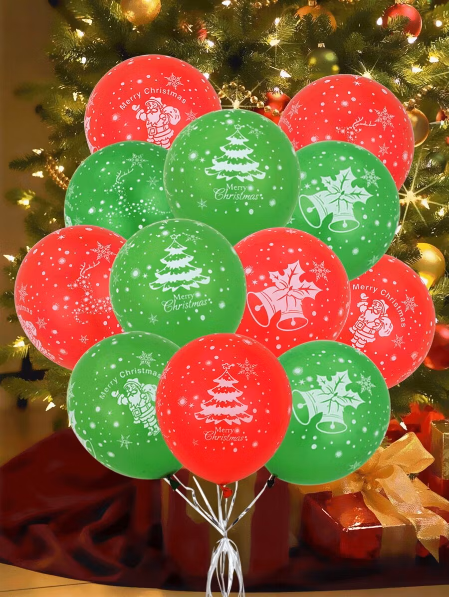 Gröna och Röda ballonger med olika julmotiv som ger vem som helst extra julstämning. Ballongerna går att fylla med både luft eller helium och blir 30 cm som fullt uppblåsta. Ballongerna kommer i 12-pack (6 st av varje färg) och med en rulle ballongsnöre.