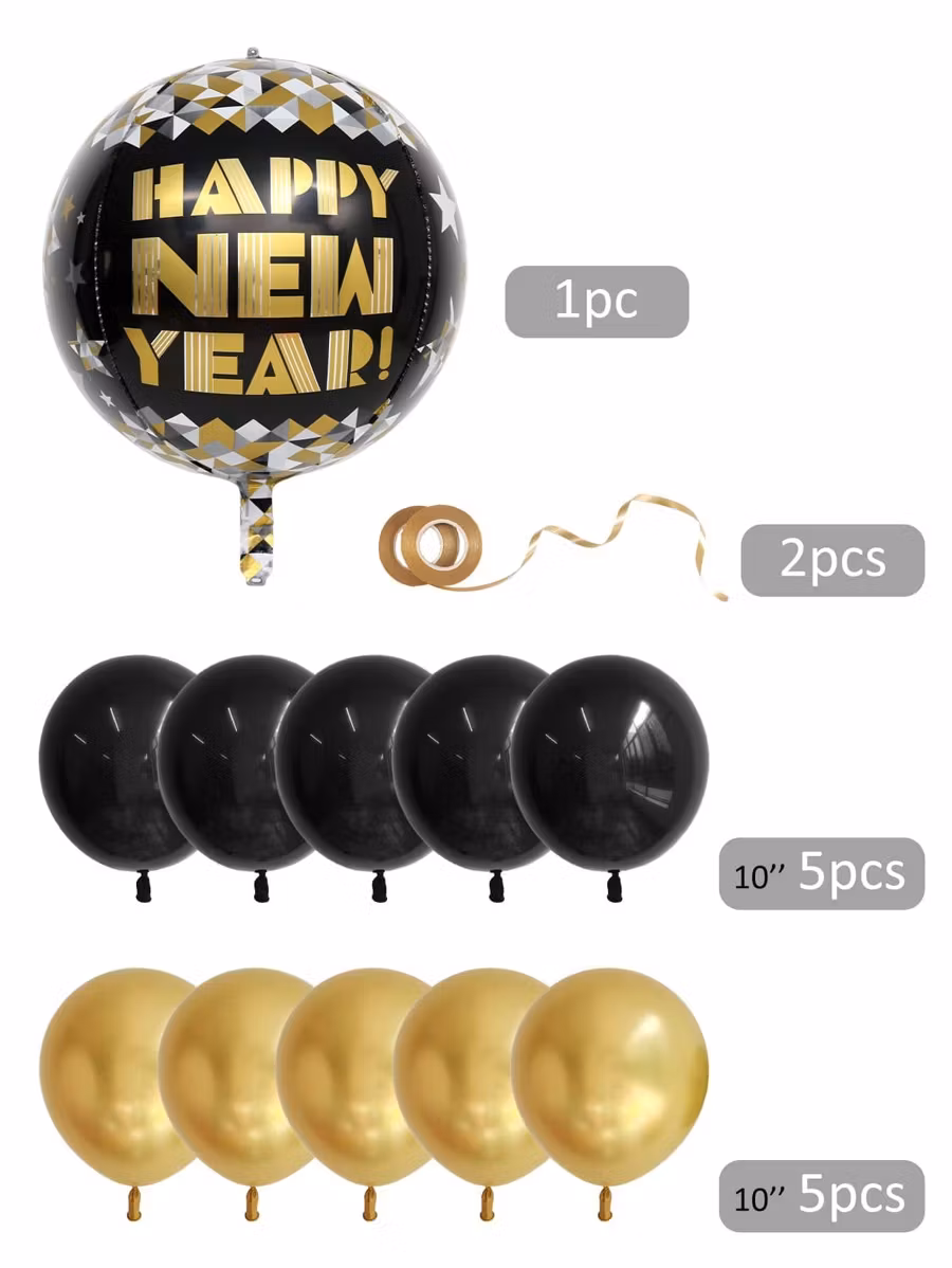 Var unik och välj att dekorera med denna ballonguppsättning i nyår. Ballongerna går att fylla med både luft eller helium.