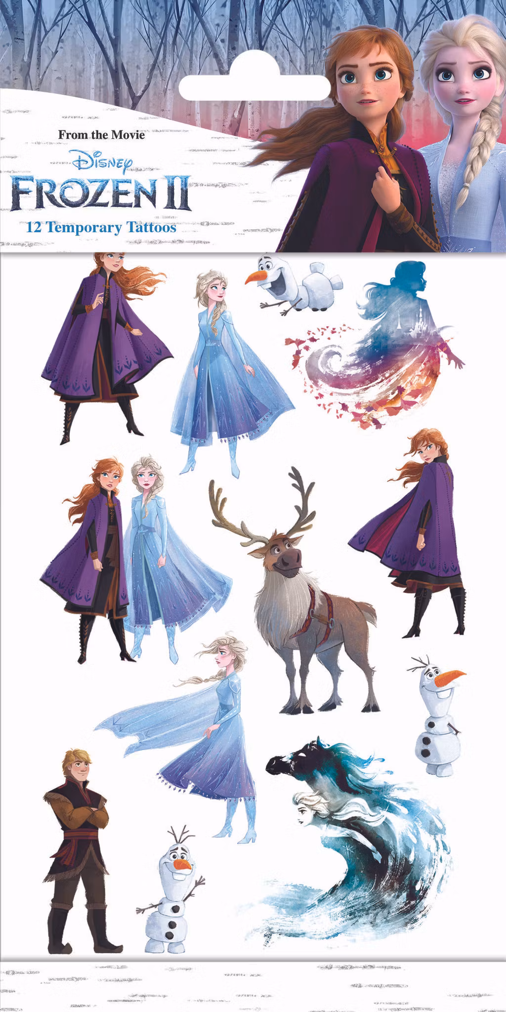 12 st temporära tatueringar med motiv av karaktärer från filmen Frozen 2.