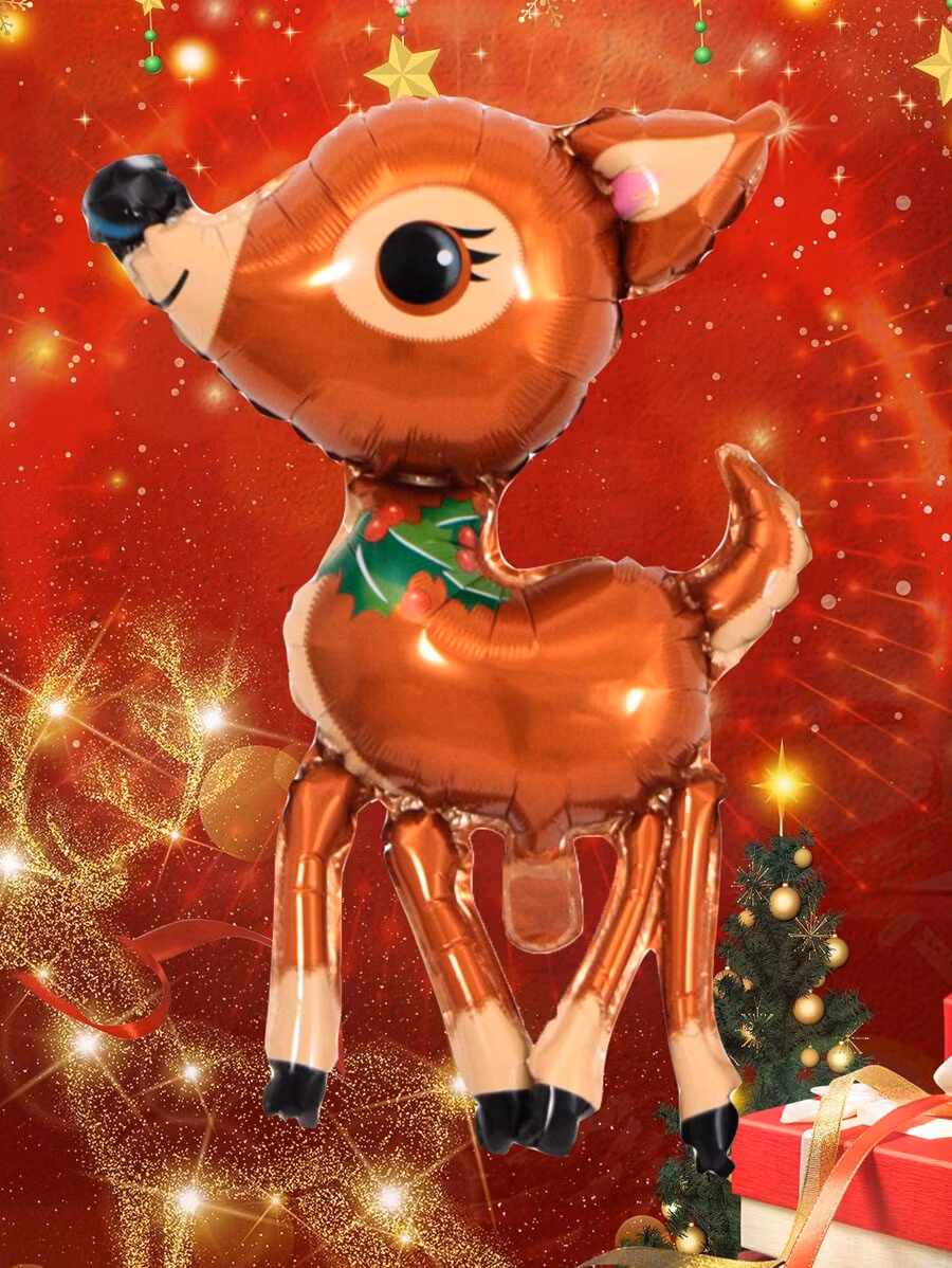 Visst är hjorten söt? Lika söt som glöggen och hör hemma på julen lika mycket som jultomten själv. Ballongen är 65 cm som fullt uppblåst och den går att fylla med både luft eller helium.