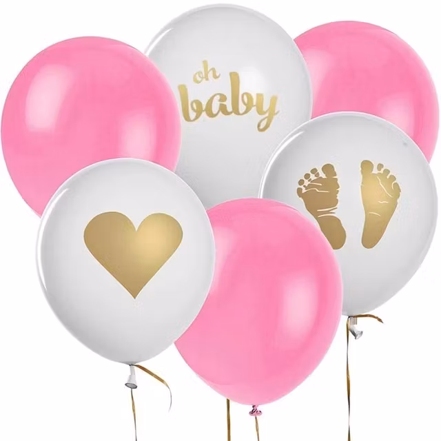 Dekorativa ballonger till Baby Shower. Överraska den blivande mamman med denna vackra ballonguppsättning för en lyckad Baby Shower. Ballongerna går att fylla med både luft eller helium och blir 25 cm som fullt uppblåsta. Kommer i 10-pack.