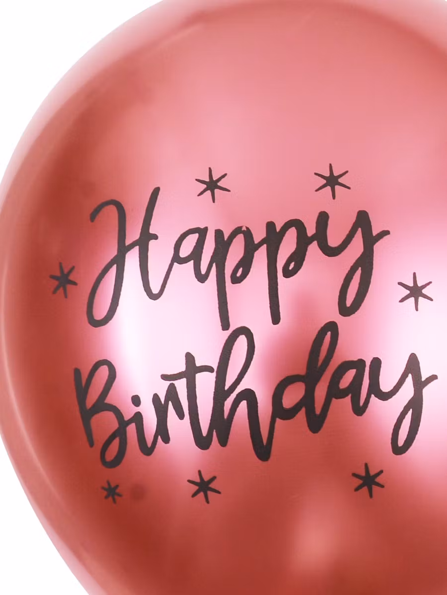 Rosa Ballonger med texten "Happy Birthday". Dessa ballonger är pricken över i:et på varje födelsedagsfest. Ballongerna går att fylla med både luft eller helium och blir 30 cm som fullt uppblåsta. Kommer i 10-pack.