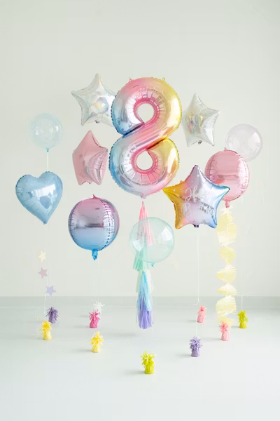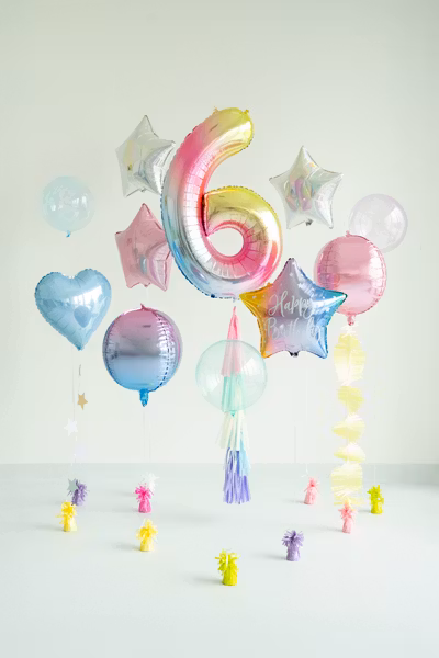 Fira stort med vår sifferballong i mjuka pastellfärger med regnbågsdesign – perfekt för födelsedagar, jubileum eller andra speciella tillfällen. De harmoniska färgerna ger en lekfull men samtidigt stilren känsla som passar både barn- och vuxenfester.